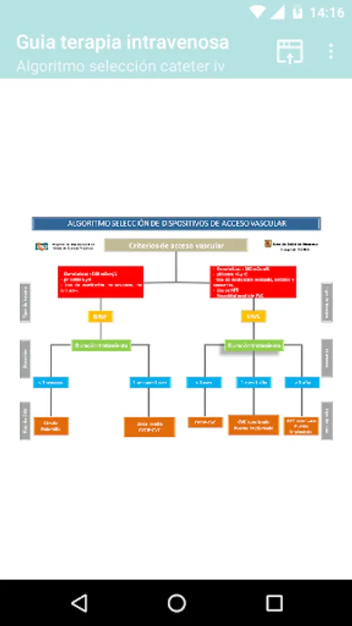 Includes content that designed the group of drivers during the first months of implementation (decision algorithm, circuit application CVC, updated protocols, interconsultation nursing, list of drugs with pH and osmolarity) and links to sites of interest in intravenous therapy.