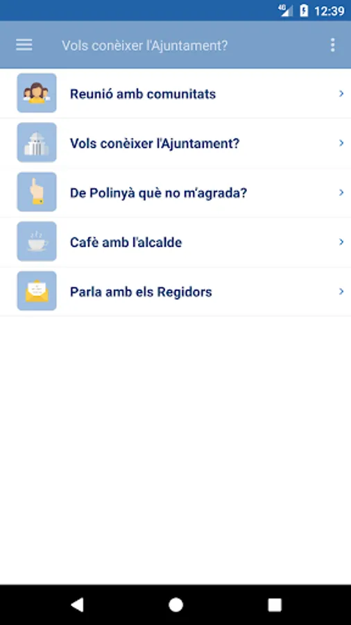 The App Polinyà is a direct door to all the information about the present activities and municipal services. In addition, through this tool you can contact the mayor and councilors and communicate incidents or damage that may arise to the people to solve them more quickly.