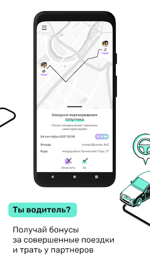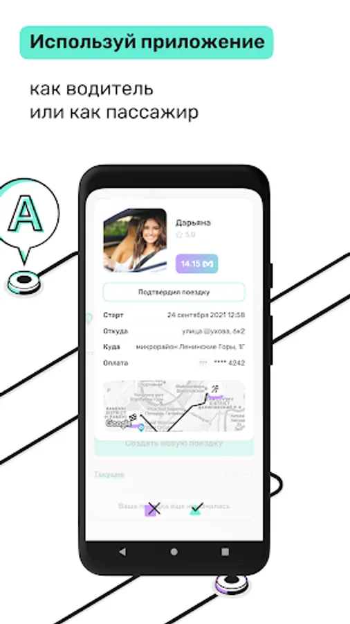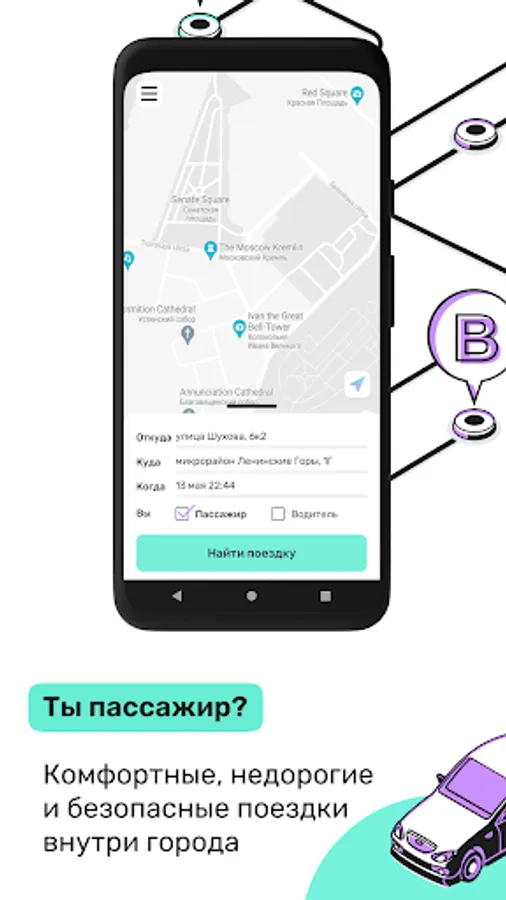 For a passenger, traveling with the MOST service is several times cheaper than by taxi and definitely more convenient than by public transport. Just create a trip and wait for the app to find you a travel companion. By the way, if you do not like the rating of a fellow traveler, you can always cancel the trip. Yes, and without your approval of a fellow traveler in the application, the trip will begin.