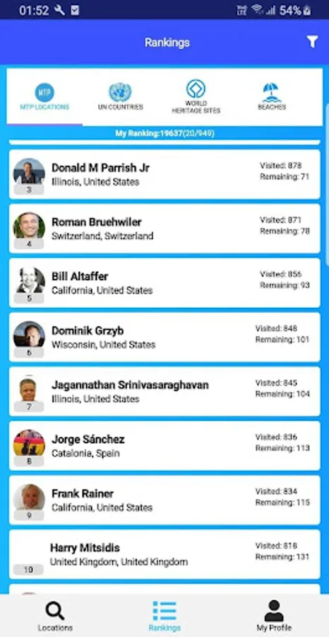 - Worldwide rankings of all users, combined with powerful filters across all lists