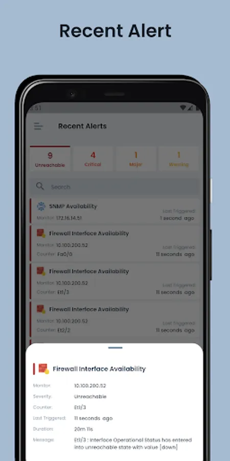 This Application will help Network administrators to stay updated with their infrastructure health. One can view device availability and active alerts at their fingertips. Context-based visualization and seamless navigation help administrators stay tuned with their infrastructure activities, on the go, on the fly.
