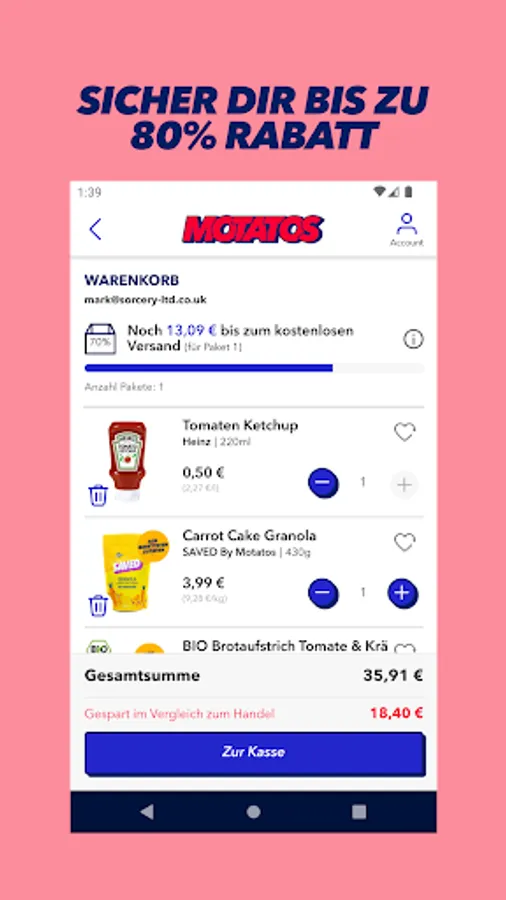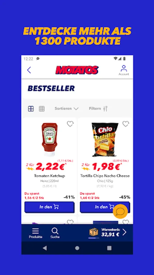 Jeder Discounter bietet aehnliche oder bessere Preise fuer die meisten Produkte. Richtig erschrocken war ich ueber die Preisgestaltung bei verschiedenen Tierfuttermitteln, die als Sonderangebot in vielen Petshops deutlich guenstiger zu haben sind. Einziger Pluspunkt ist der Lieferservice (bieten aber einige Supermaerkte ebenfalls an und zu geringerem Mindestbestellwert fuer frei Haus Lieferung). App nutzlos und geloescht.