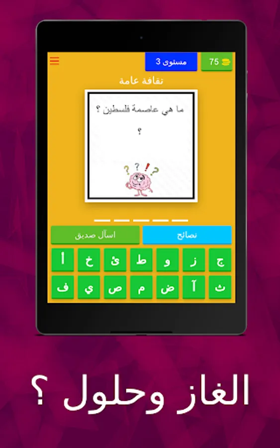 It is a difficult puzzle game with a solution, one of the very entertaining games, as it will work to solve difficult and easy puzzles, and in this game you will also find in this application religious questions, general culture questions, and mathematical questions, in addition to easy and difficult gases, this application contains many advantages as You will find many games inside this application, this application is the best puzzle for smart people, and it is considered among the challenging games on this platform, this application helps you to increase your general knowledge