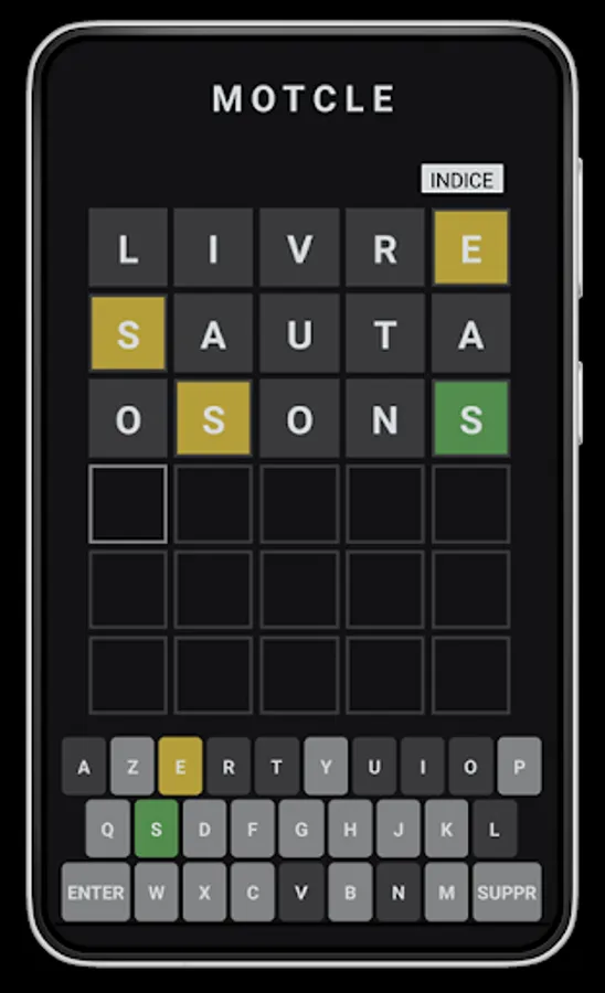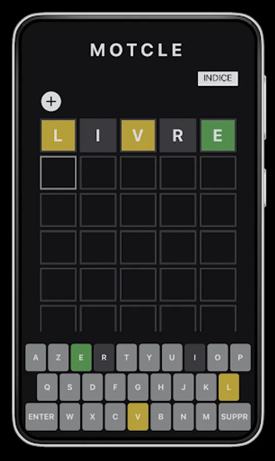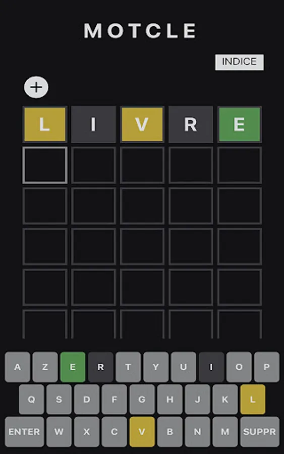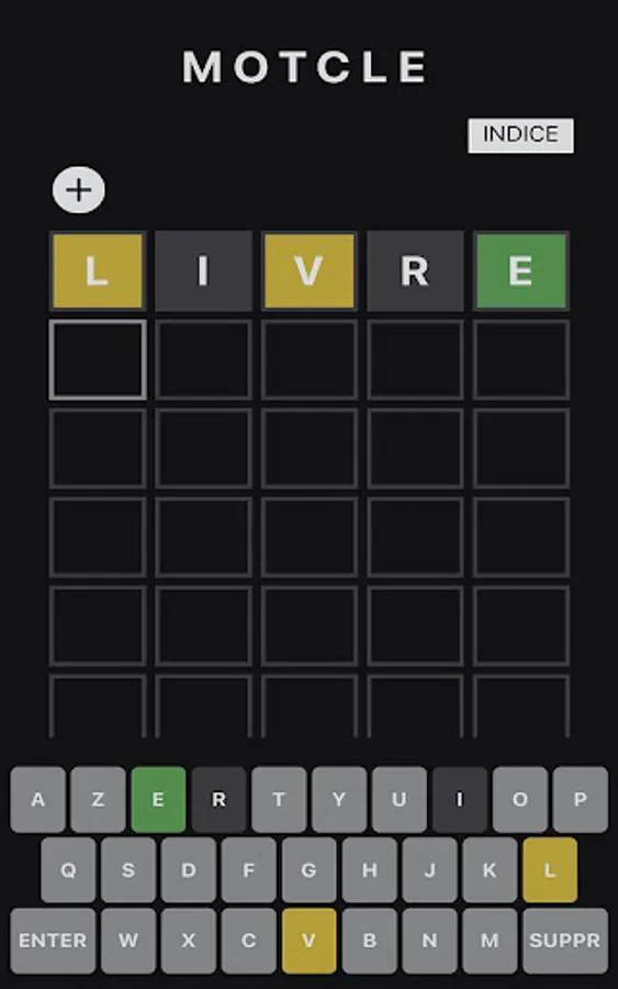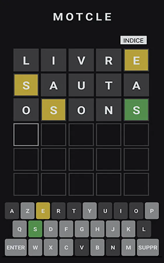 Chaque supposition doit être un mot valide de cinq lettres. Utilisez le bouton "entrer" pour soumettre