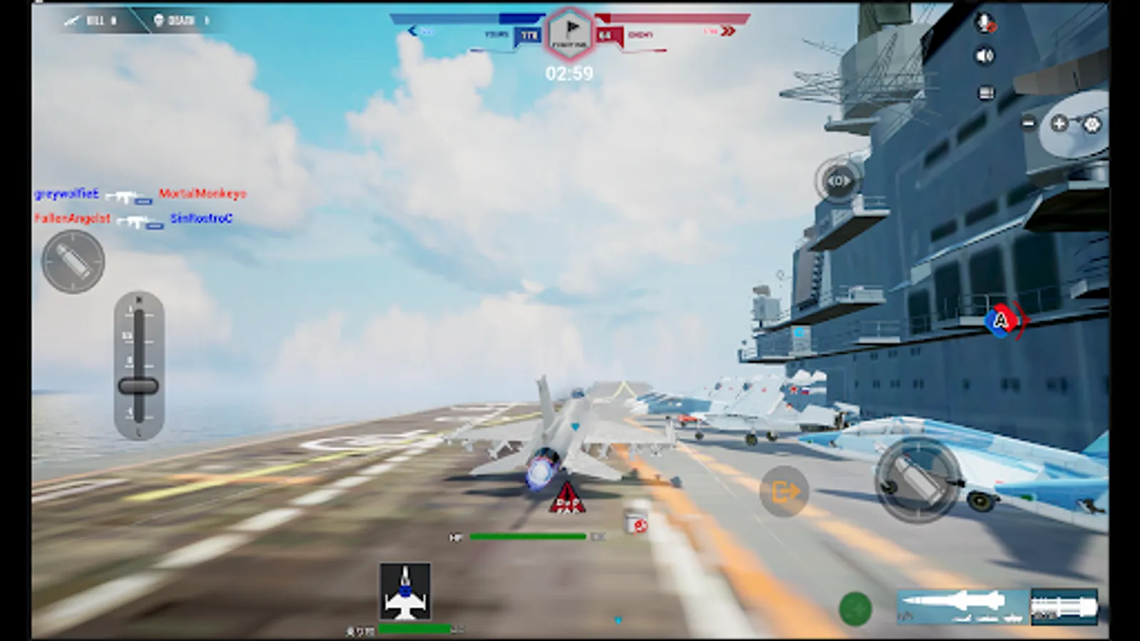 In Joint Strike Battlefield, aircraft, attack helicopters, ground forces and naval ships collaborate in realistic competitive battles. You can find yourself blasting your pursuers from a helicopter window machinegun, defending your teammates on the ground from an air raid with anti-aircraft guns, shooting down enemy planes with a c50 machineguns, or trying to sink an enemy warship with a missile from a airplane.
