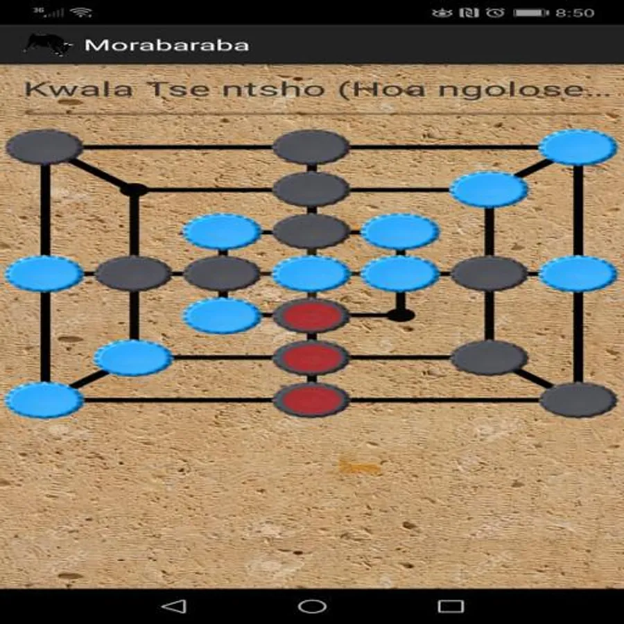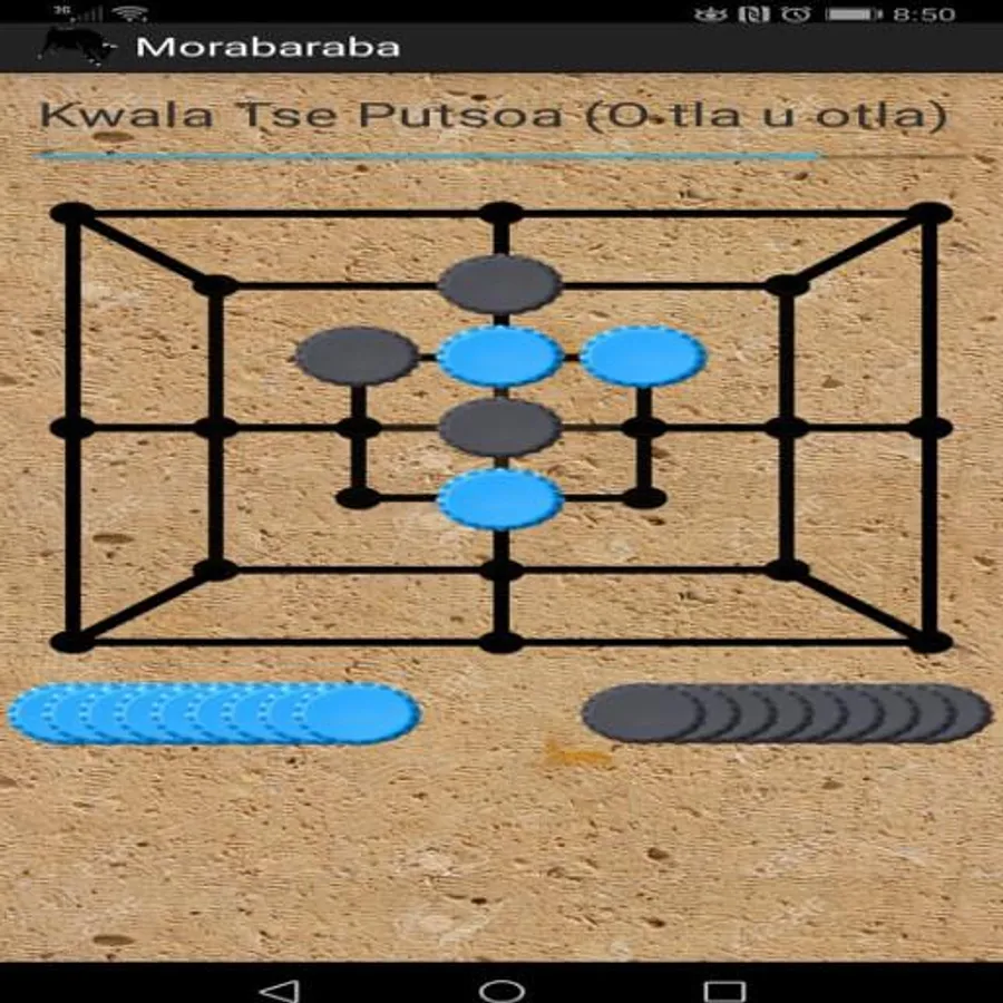 This is a board which played my two players whom each have 12 cows, meaning pieces, at the start of the game. The players both take turns to place their cows on the board until they are both out of cows in their hands. Soon as they are done, then they can start moving their cows on the board. If three cows form a line and a player with this pattern can eat, meaning take away from the board, one piece from the other opponent's player's cows. The game ends when one of the two players is left with two cows only.