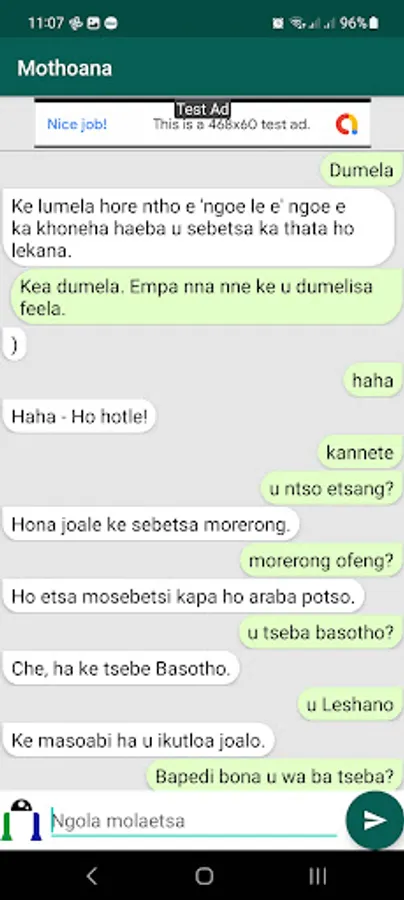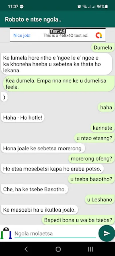 The AI Chatbot App that chats in Sesotho is an Android application designed to allow users to have a conversation with an artificial intelligence-powered chatbot in the Sesotho language. Sesotho is a language spoken by the Basotho people of Lesotho and South Africa, and this app is specifically designed for users who speak Sesotho or are interested in learning the language.