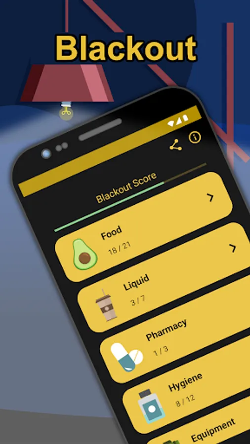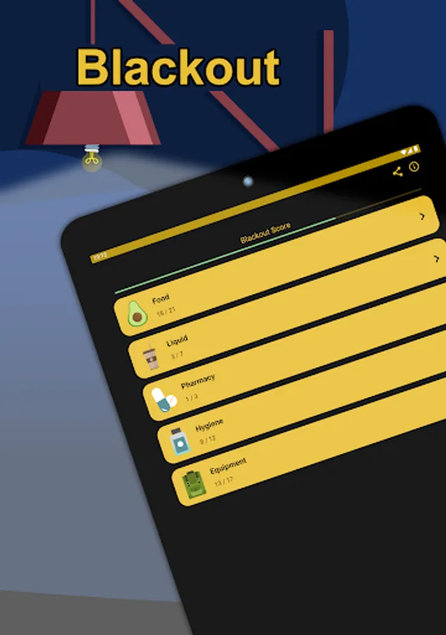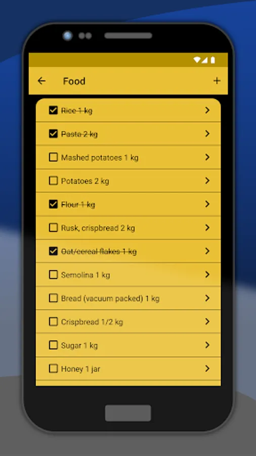 All essential categories are included. In addition to categories such as food, liquids, pharmacy and hygiene, there are also useful equipment items that will help you in an emergency.