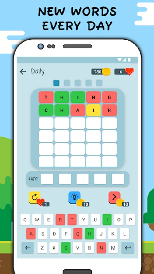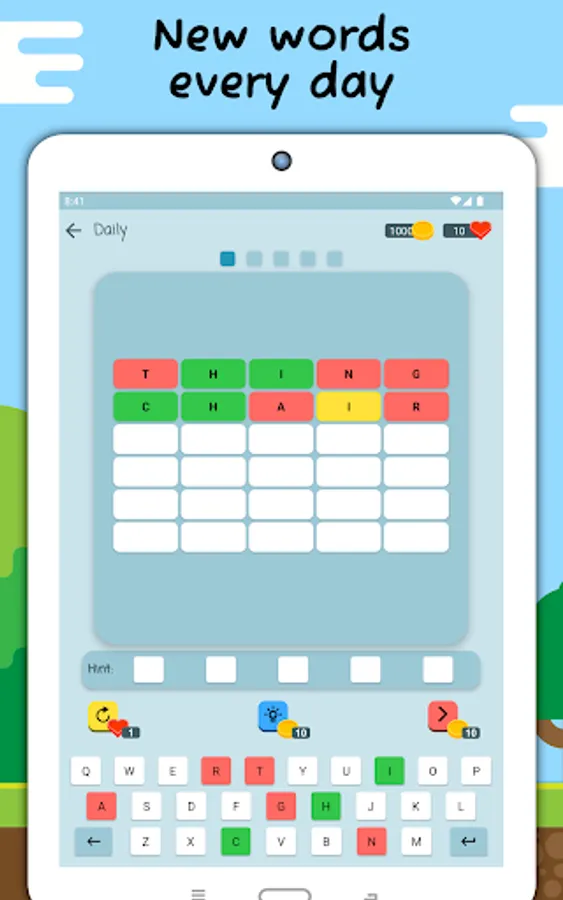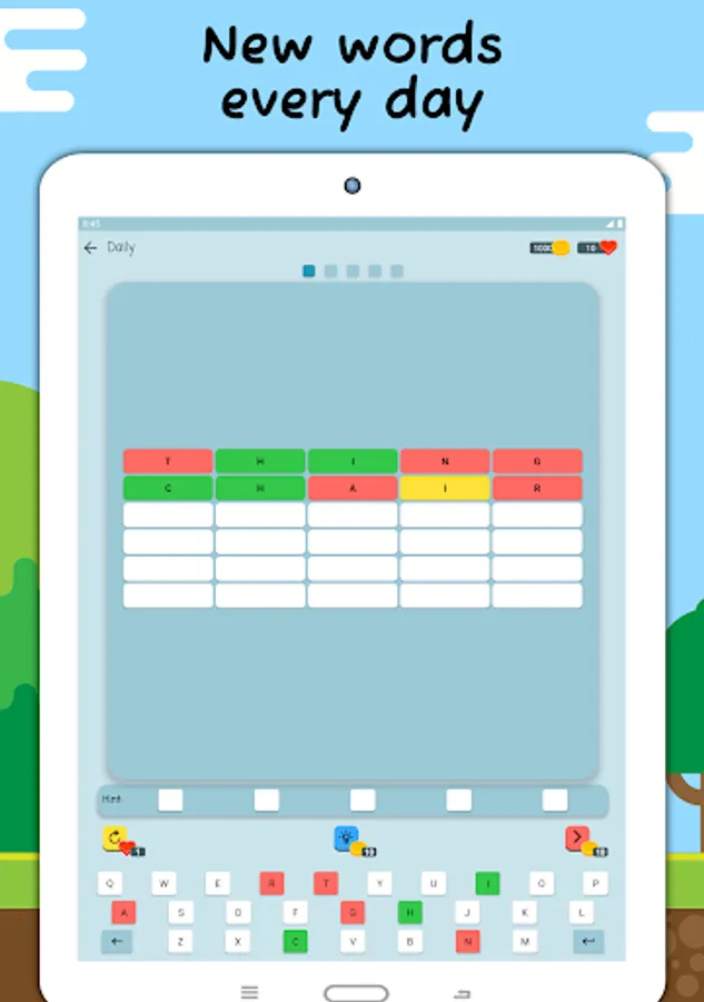 Every day, 5 new words, each with 5 letters, are waiting to be discovered and solved by you.