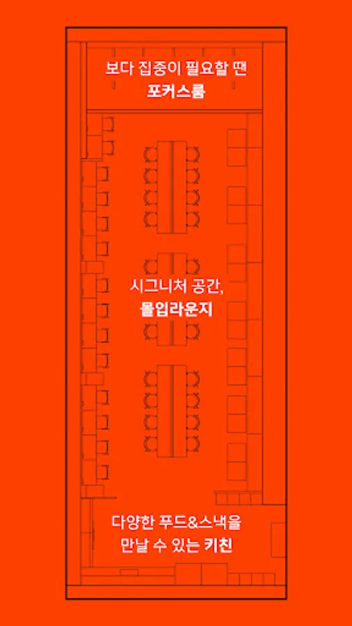 Cafés, study cafes, and existing shared offices are a bit disappointing, and if you are looking for a good space to work or study, you can secure your own immersion space without space and time restrictions in an immersive time where liveliness and calm coexist, providing the highest efficiency. Show off!