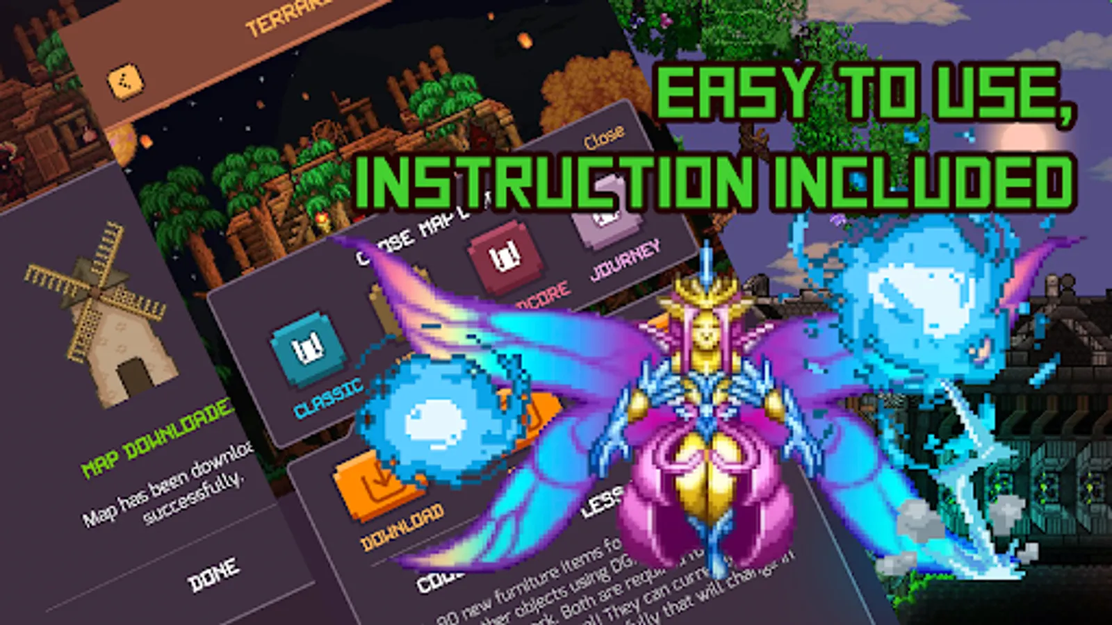 Mods for Terraria gives you the opportunity to overcome new challenges, get a unique look for your character and enjoy non-stop adventures with maps. Mods offer wide collection of different maps and skins, each representing a difficulty level full of mystery and adventure. Maps can be different size large and little, survival, labyrinths or contain only one big house. Discover new worlds, explore intricate labyrinths, defeat powerful bosses and expand your abilities in this exciting TL, TR Mods for Terraria. Skins allow you to customise your character and add personality to your adventures in Terraria. You will be able to choose a skin that reflects your style and preferences. Let your character stand out from the rest and become unique in this exciting game world.
