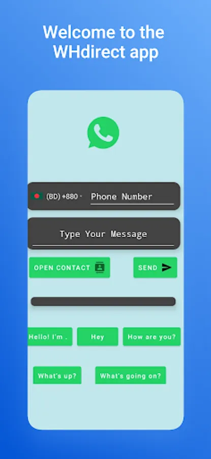 WHdirect lets you send messages to any number on WhatsApp without saving any contact info.