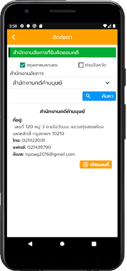3. Find phone numbers, addresses and locations of various prosecutors' offices. all over the country and can connect to the GPS system To set a route to the prosecutor's office that wants to travel to contact easily