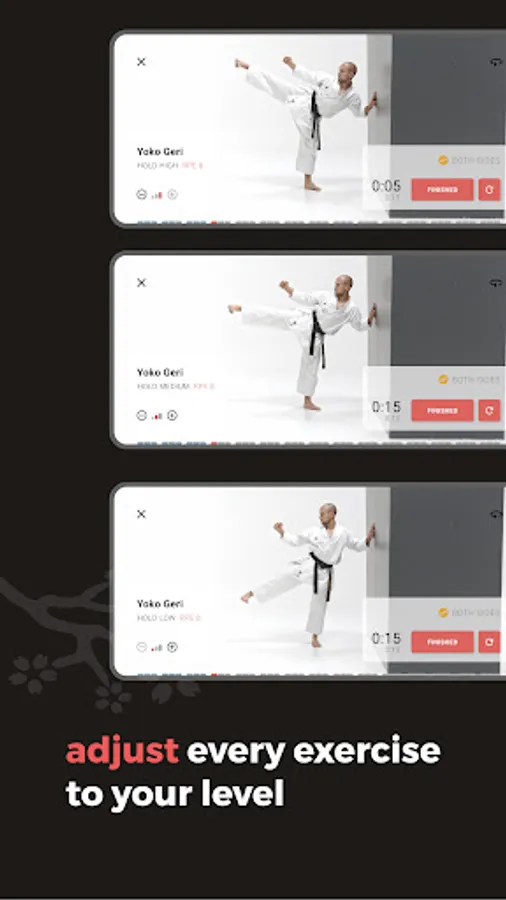 Dojo Workouts – the most advanced workouts in the world. You can customize each exercise within a workout to suit your ability. Each exercise consists of up to 6 levels that you can adjust during the workout. This way you can train together with your friends in your dojo without anyone being over- or underchallenged. Train regularly and see if you can advance to the next level of an exercise!