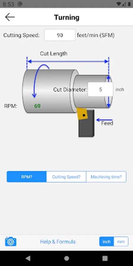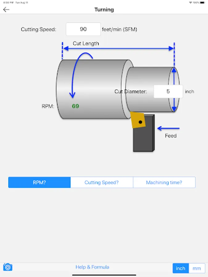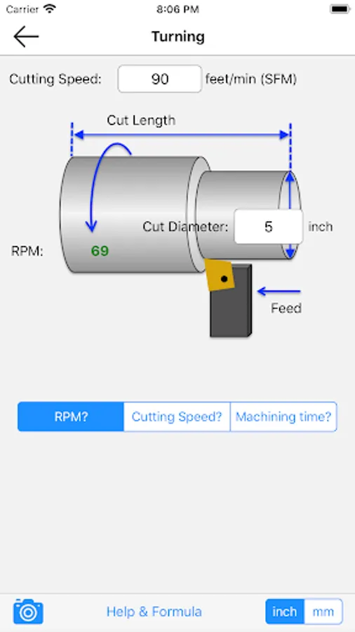 - Calculate Machining Time given Cutting Length, RPM and Feed/Turn
