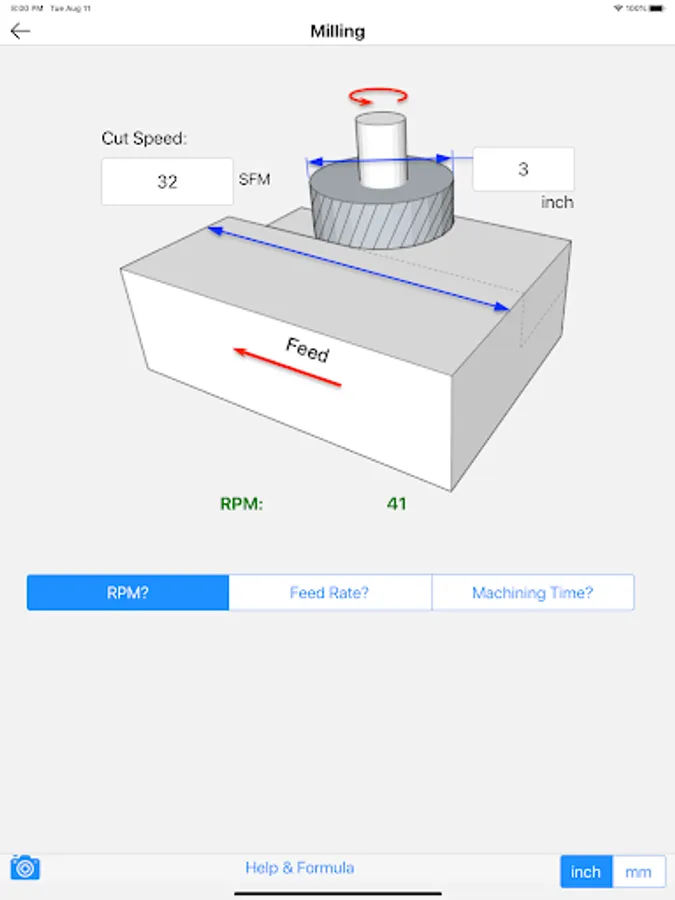 - Calculate RPM given the Cutting Speed and Tool Diameter