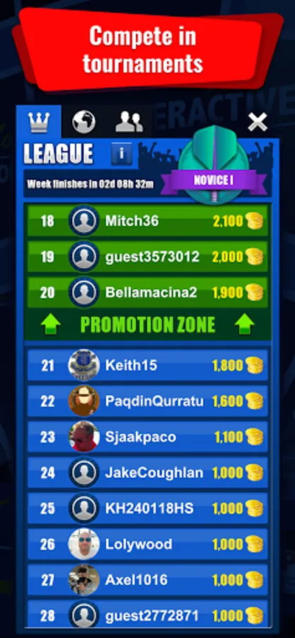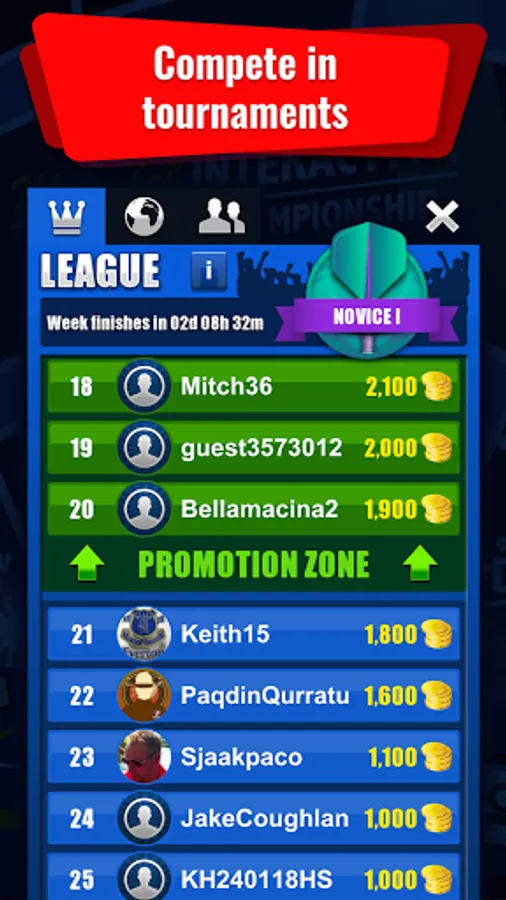 Pair up with any other player around the world and compete for huge prizes. Join the monthly tournaments for a chance to win huge prizes. Enter as a low stakes amateur or compete in events like the Premier League, Interactive World Darts Championship or Golden Circle to win BIG!