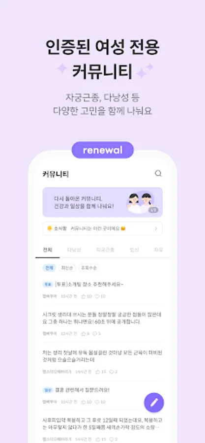 Share various information with women who have the same interests as uterine fibroids, polycystic ovarian syndrome, menstruation, pregnancy, etc., and relieve their worries. Let's move on to a healthy life together.