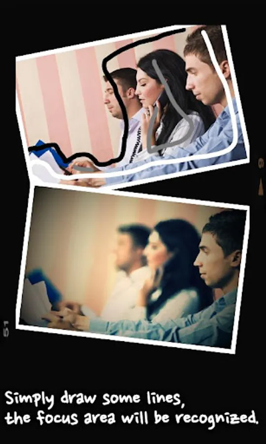 Simply draw some lines inside a focus area and the background, then AfterFocus will automatically recognize the focus area. You can also select the area with traditional finger painting.