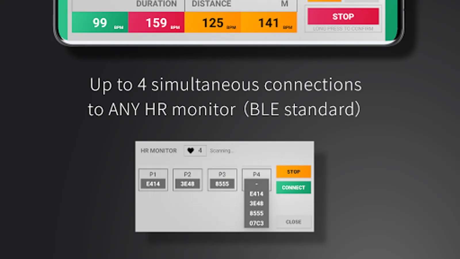3. Connection to HRM devices via BLE (up to 4 at the same time)