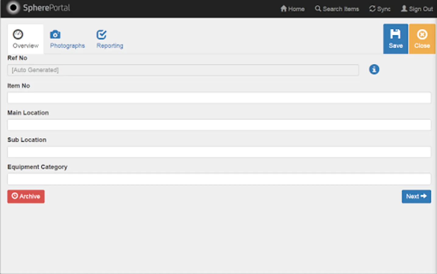 SpherePortal application for engineers and customers to carry out exams and checks.