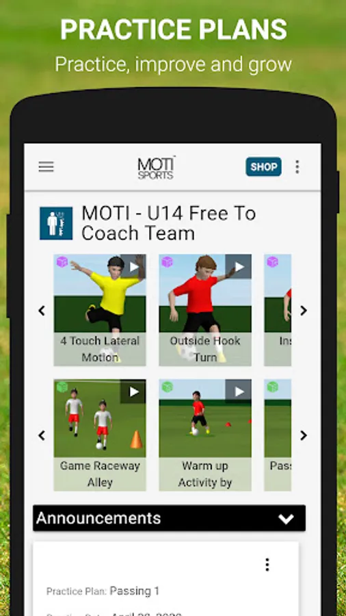 + Connect to other coaches, players, and parents with MOTI Announcements.