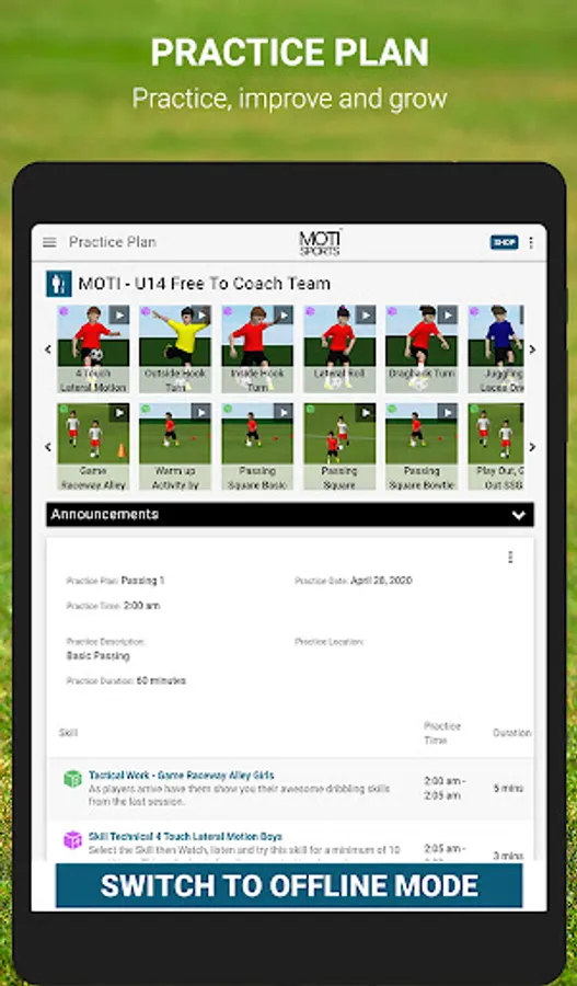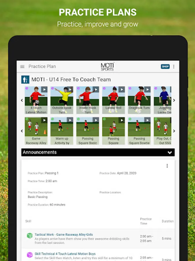 + MOTI Soccer is an all-in-one app with scheduled practice plans, 3D skills, 3D drills, rosters, drawing, analytics, videos, and communications.