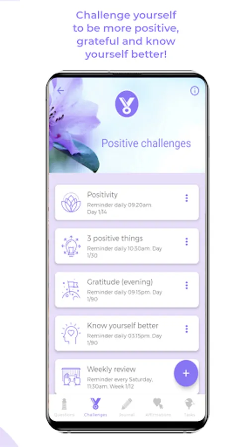 You can choose many other positive questions and also set reminders for other important moments of the day to guide yourself towards more positive thinking and well-being.
