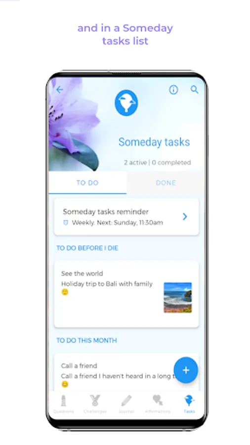 You can write answers to the question reminders in your journal and see the progress and previous answers whenever you want. You can also write whatever positive thoughts come to your mind in the journal.