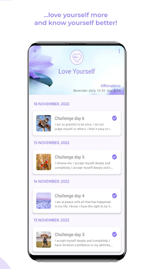 With Positive Affirmation challenges, you can train yourself to be more positive, see life in a new way, and take control of your happiness and your life. You can focus on positive thinking, loving yourself, smiling more, being happy, inner peace, and achieving your goals.