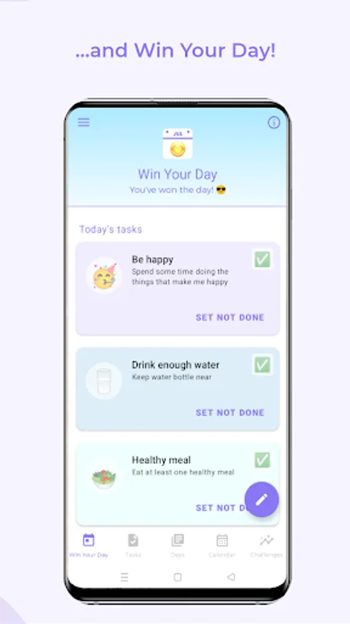 The Win Your Day app helps you choose daily tasks that help you grow and develop yourself, bring joy and happiness to you, and win your day. The app can also improve your motivation and overall productivity, and help you focus on your priorities.