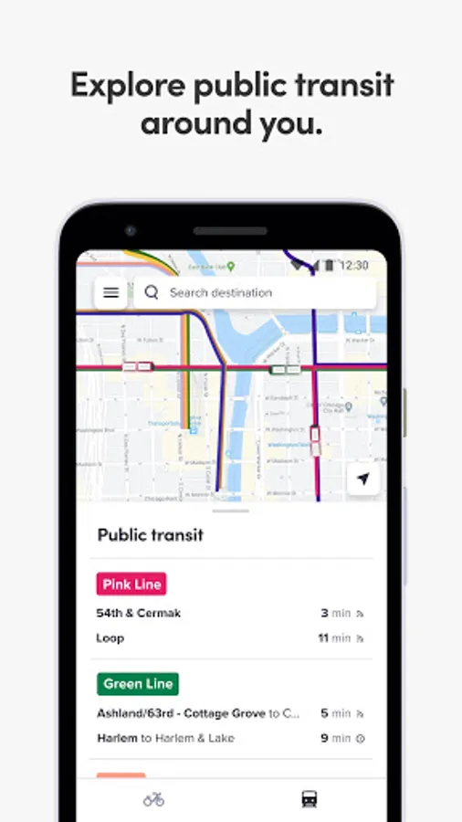 The Divvy App also shows upcoming public transit departures, including CTA ‘L’ train lines, local & express buses, shuttle buses, the Jeffery Jump Bus, Metra trains, PACE buses and the South Shore Line train.