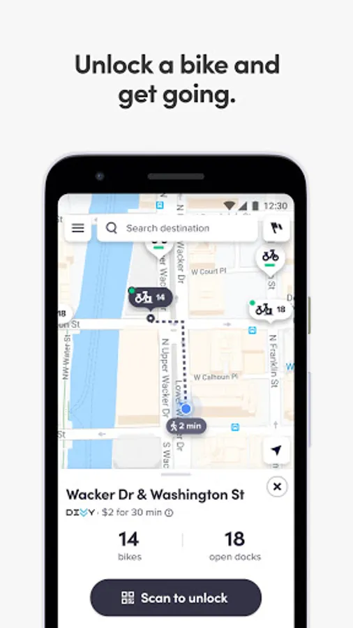 The Divvy App gives you access to thousands of bikes in your area — unlock and pay directly from the app and get going.