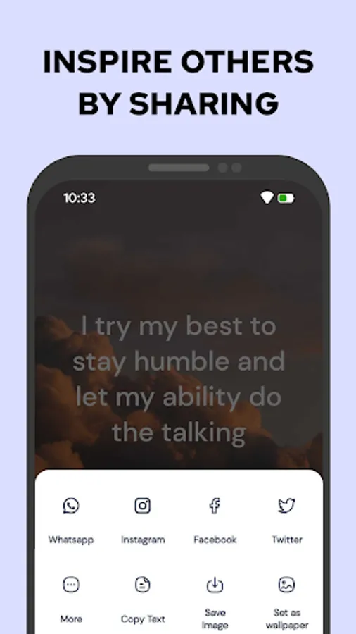 Spread Daily Inspirational Quotes with others! Motivation widget allows sharing of daily inspirational quotes with friends, family, and social media.