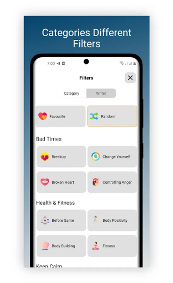 Start your day with daily random quotes with a beautiful and eye-catchy background. Create your quotes using multiple customizable themes for free. Share your quotes on social media, add a home screen widget, set daily reminders, search using filters, and more.