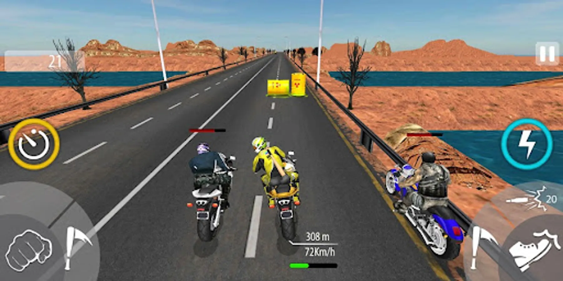 Moto Bike Attack is an exciting motorcycle racing and attacking game.