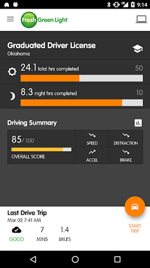 Fresh Green Light helps teen drivers safely get their license. Teens and parents can use this app to record the hours required by state law to complete a Graduated Driver’s License GDL or learner’s permit.
