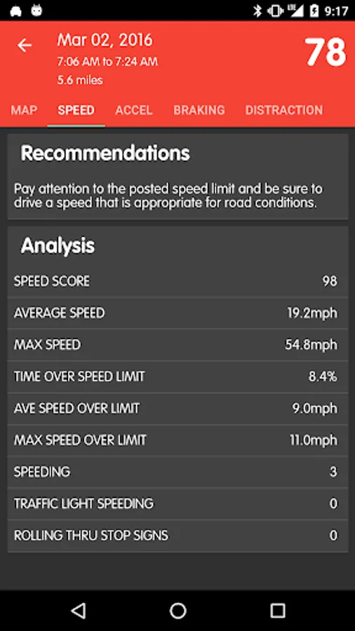 • Scores drivers in the areas of distraction, aggressive accelerations and braking