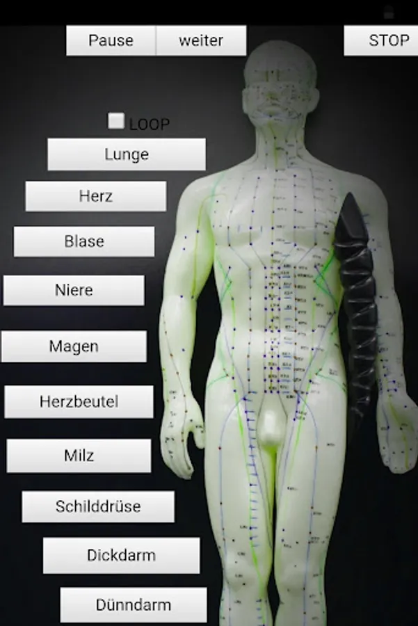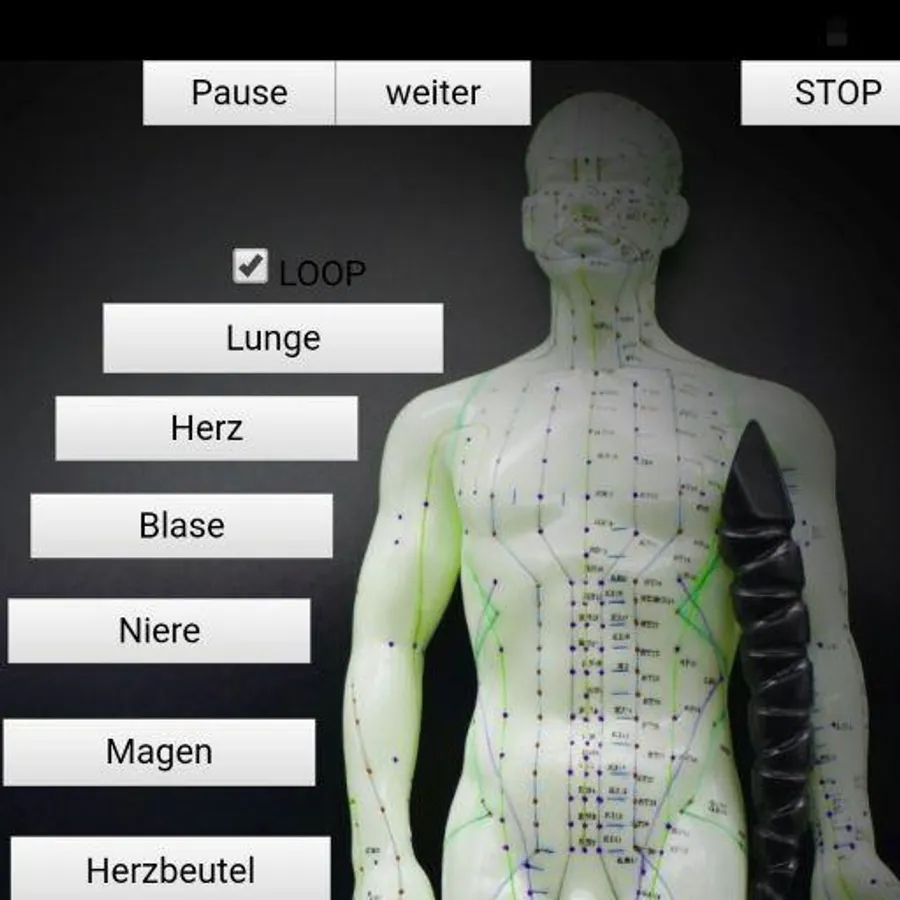 If you have started several compositions unintentionally, you can stop them all with Stop and start again with your desired meridian.
