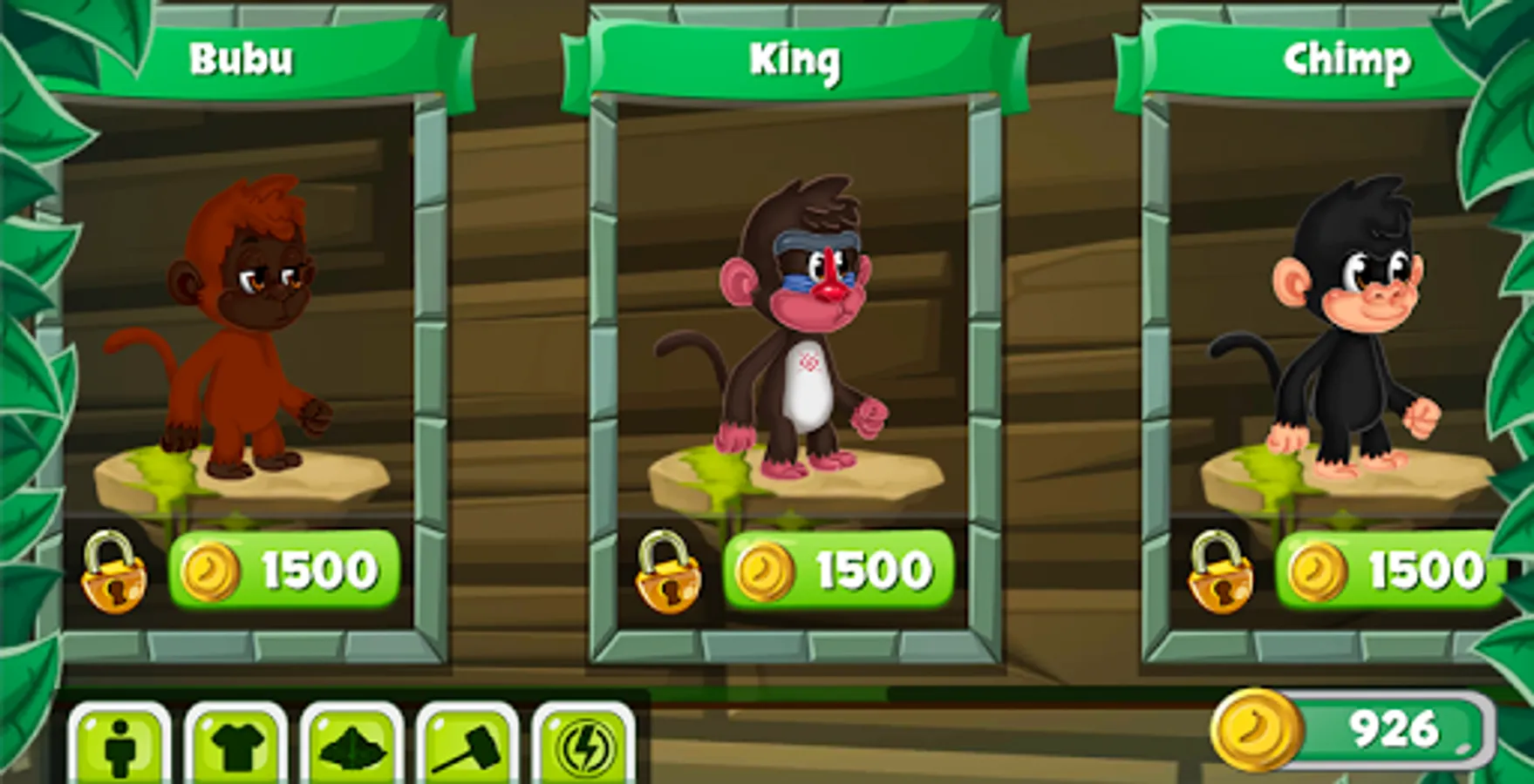 - Collect gold coins and buy different characters, angry monkey, sad, cheerful, various colors