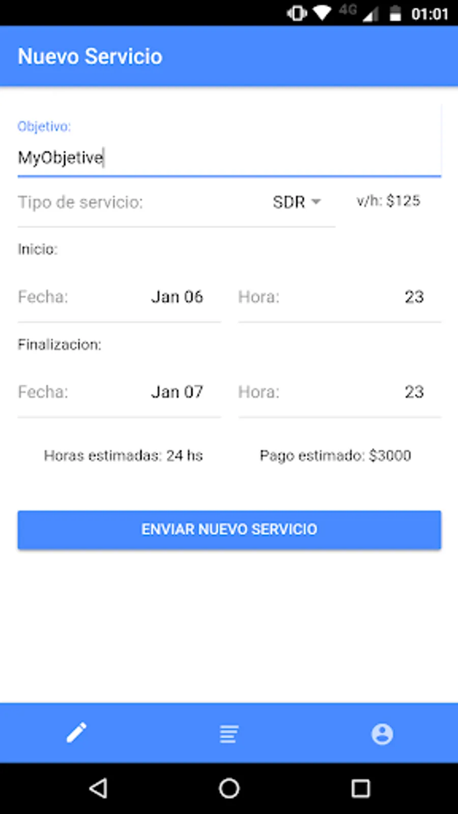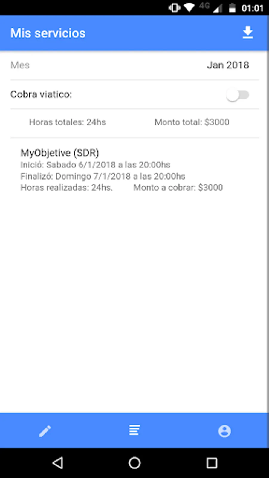 This application is used to control the hours worked as well as the type of service offered and the accumulated amount receivable.