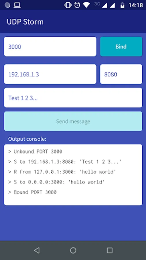 UDP Storm is a tool used to send and receive UDP packages. Is simple and clear to use.