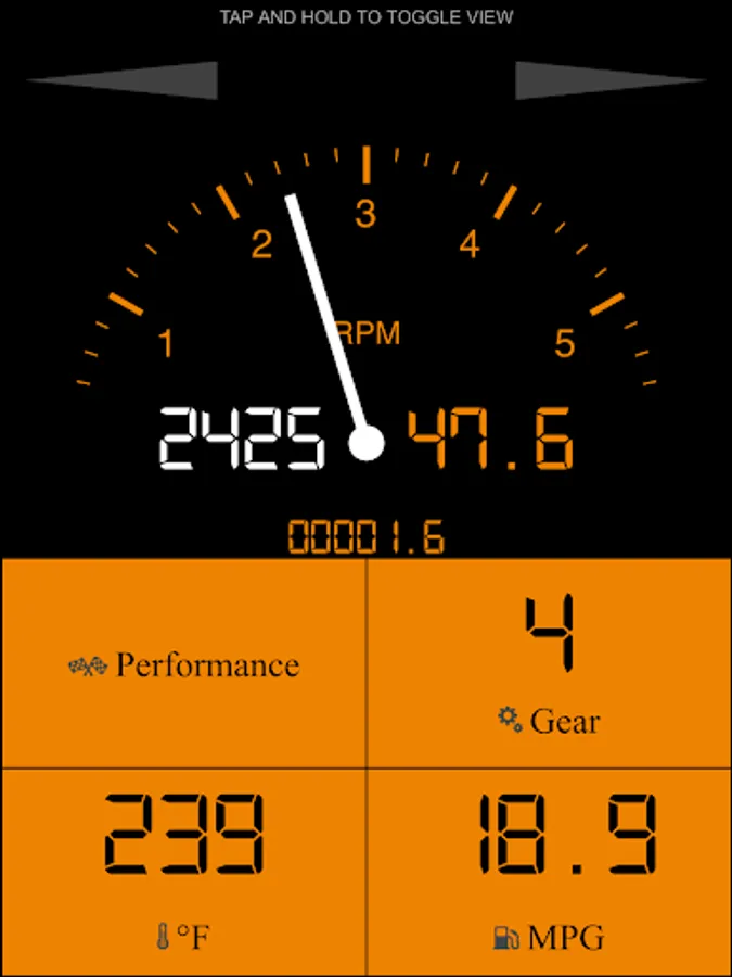 RPM, Engine Temperature, Engaged Gear, Average MPG, MPH, Horsepower, Torque, Speed, Acceleration and DTC Trouble Code Lookup.