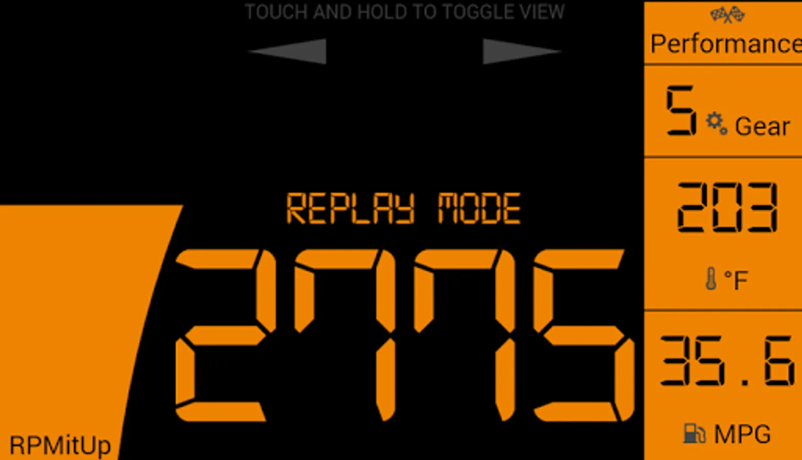 RPMitUp provides real-time data from your Harley Davidson Motorcycle wirelessly to your Android device. Different modes allow for use as a Speedometer, Tachometer, and Dynamometer. It can also be used to playback information from a previous ride. The following information is provided: