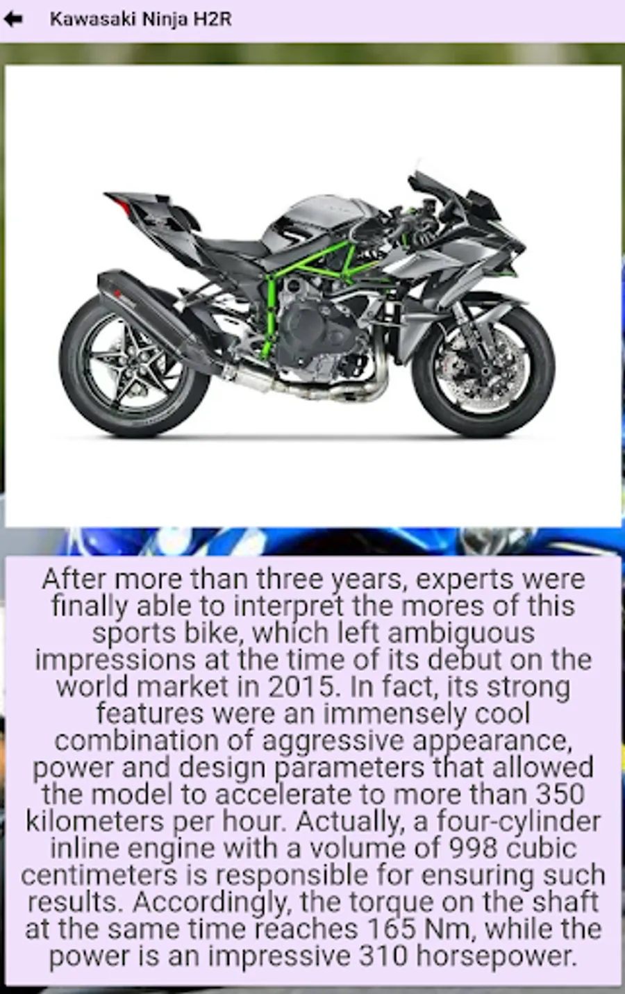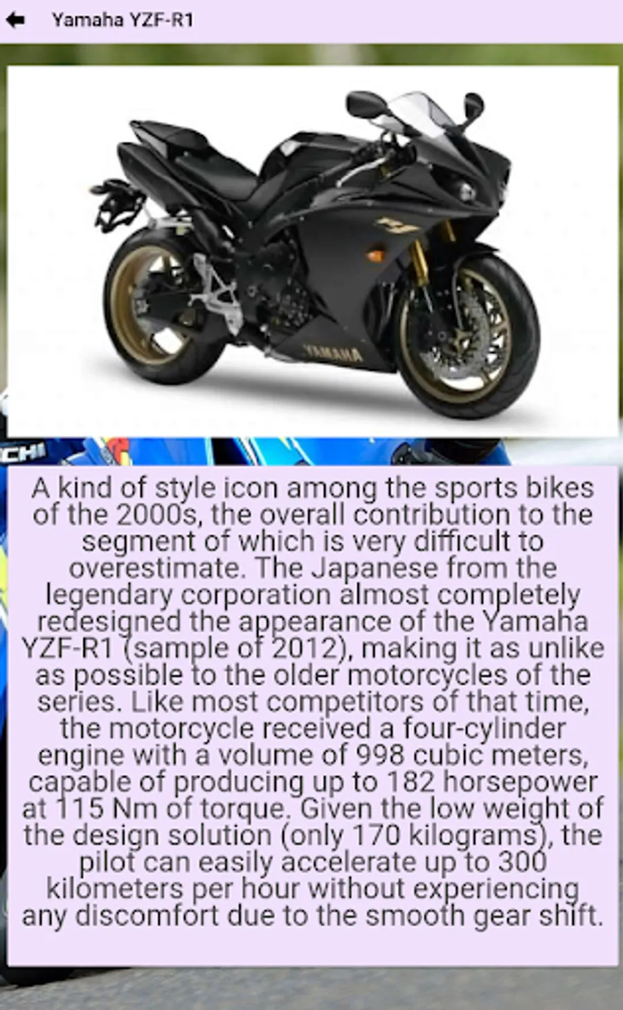 We invite you to learn more about motorcycles. In this application, we have collected interesting models that will definitely attract you. It's never too late to learn something new.