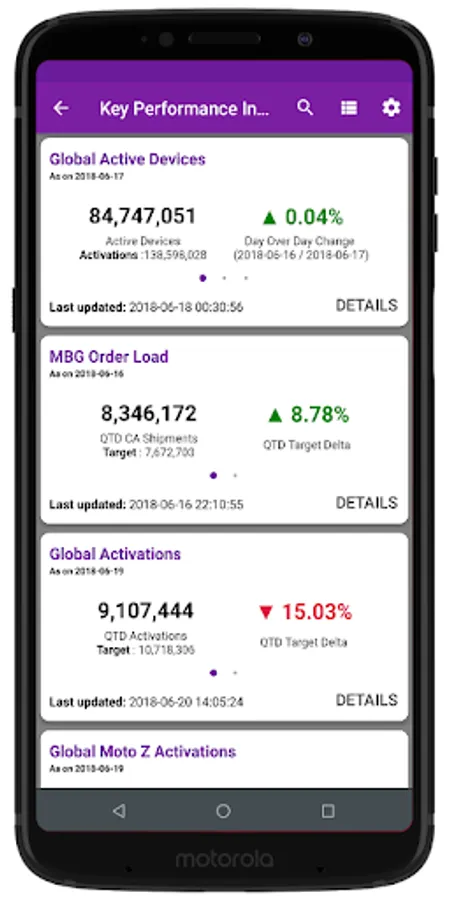 KPI's - Select business metrics and track their status with automated daily updates, including statistics and historical performance.