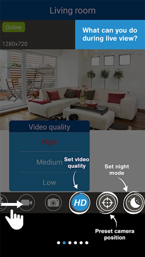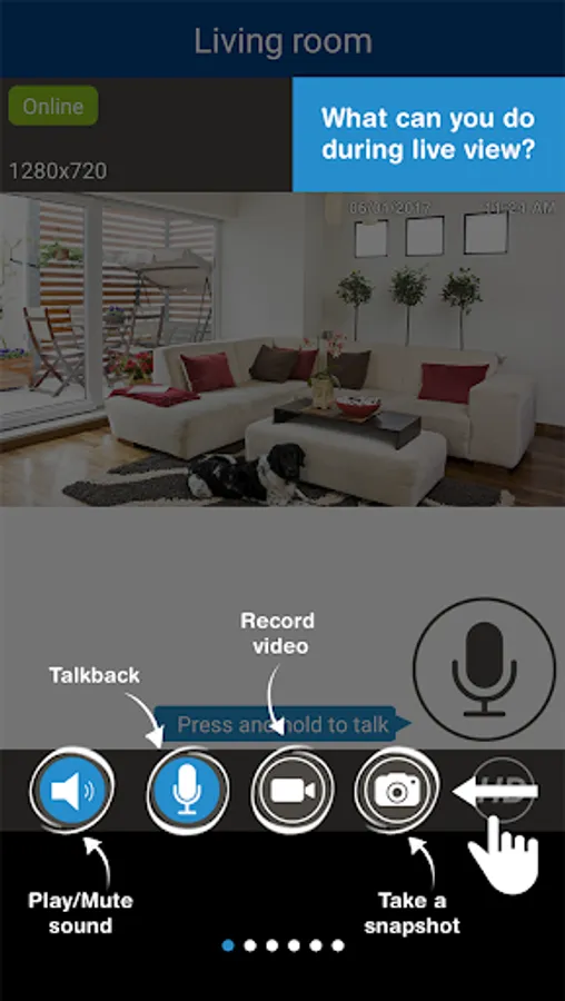 • Pan, tilt and zoom the camera(2) from your smartphone to get a better look around