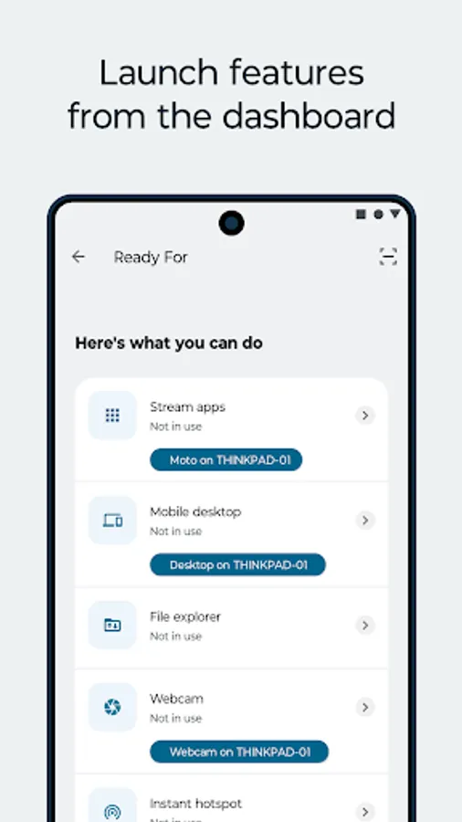 • Stream your favorite apps and media from your phone or tablet to your PC or smart display.