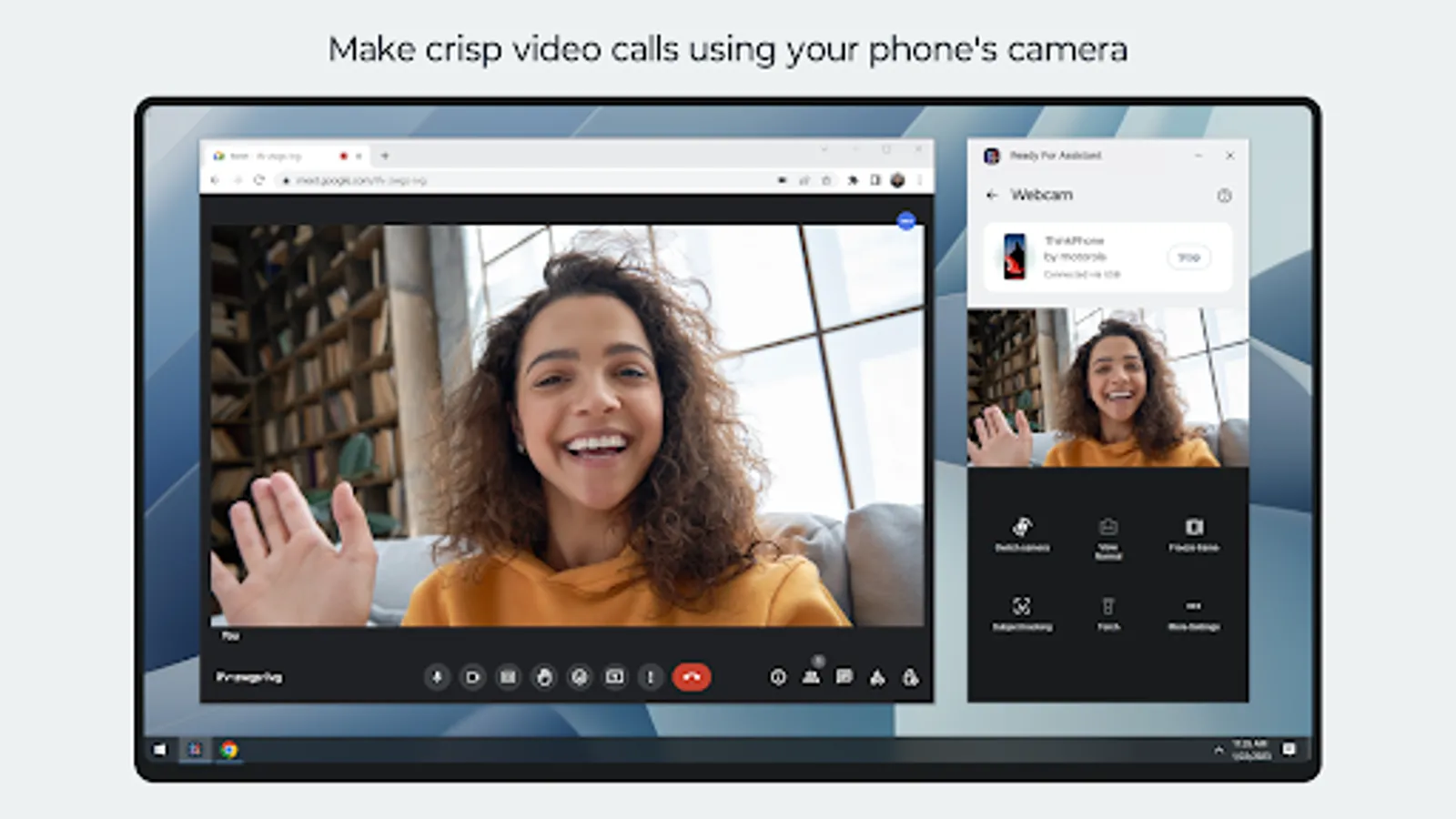 • Use your phone or tablet’s high-resolution camera with Webcam for clear, professional video calls.