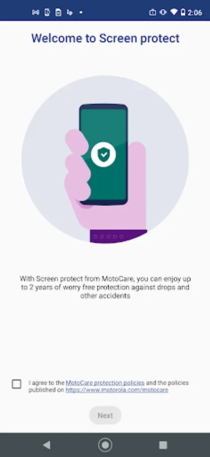 MotoCare Screen Protect (MCSP) provides limited warranty protection against screen damage occurring during normal use on eligible Motorola devices for up to 2 years. Register your device and complete a quick hardware test to confirm eligibility. Valid only on select models in the U.S. and upon purchase of MCSP Bundle. Motorola case and screen protector purchased in MCSP Bundle must have been used on the device at time of damage to qualify for warranty coverage.